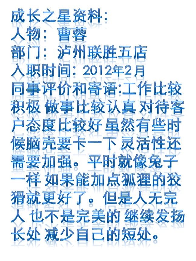 瀘州聯勝2012年7月成長之星曹蓉